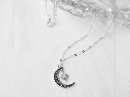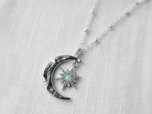 Silver Crescent Starburst Necklace
