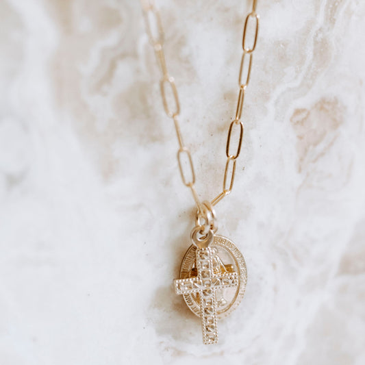 Tiny Virgin Mary Cross Necklace