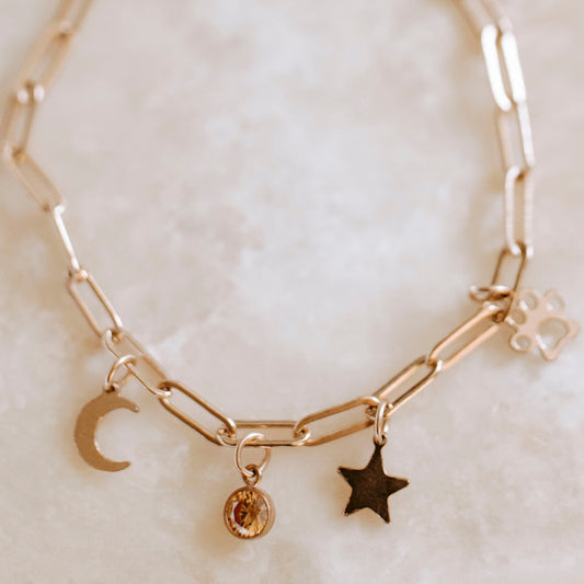 Rose Gold Filled Paperclip Charm Bracelet