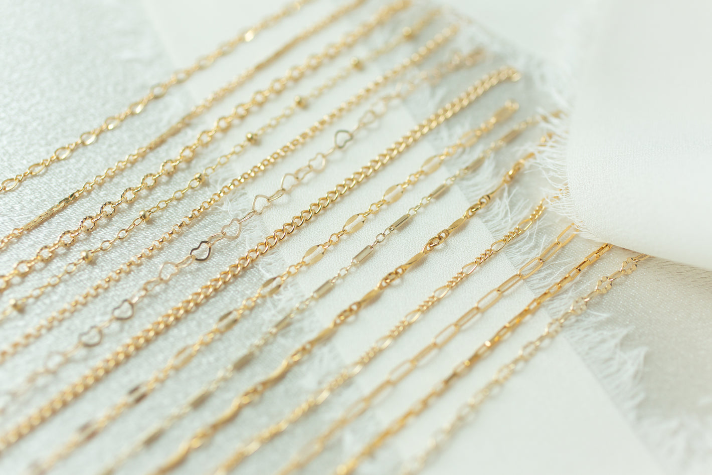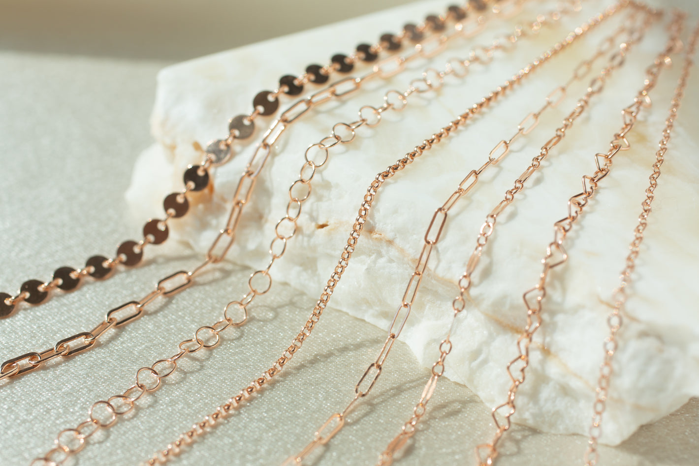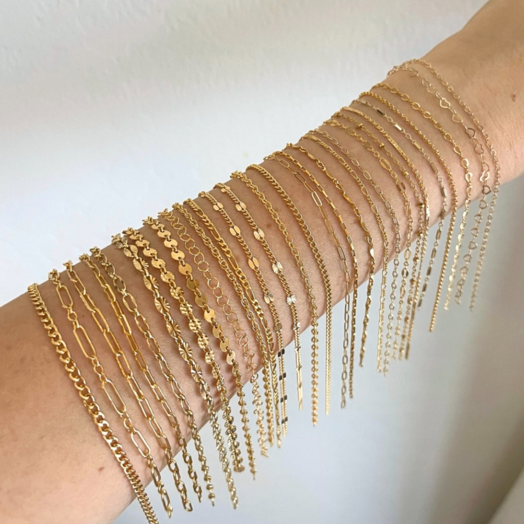 Choose from 14K solid gold, 14K gold filled, 14K rose gold filled, or sterling silver chains. Add a dainty connector or meaningful charm to create a piece that’s as unique as you are.