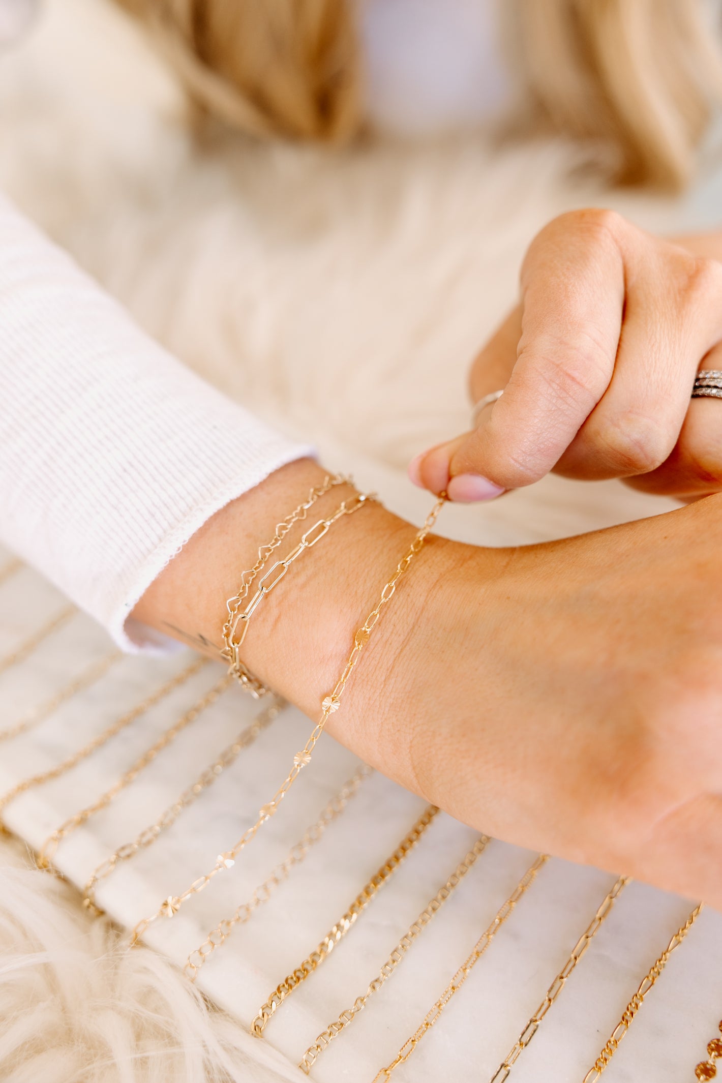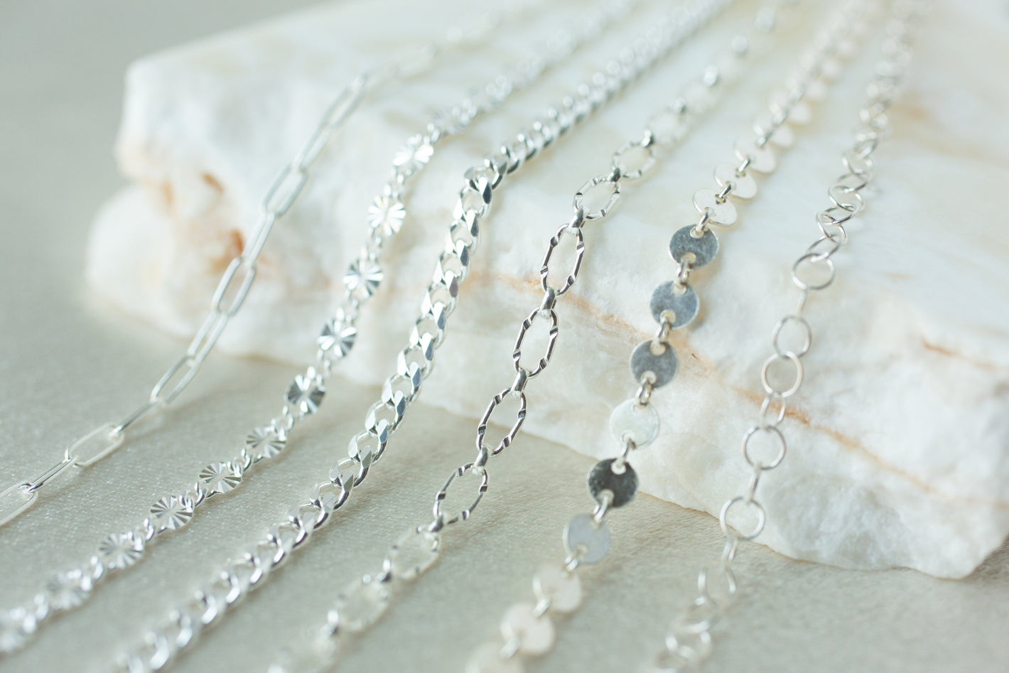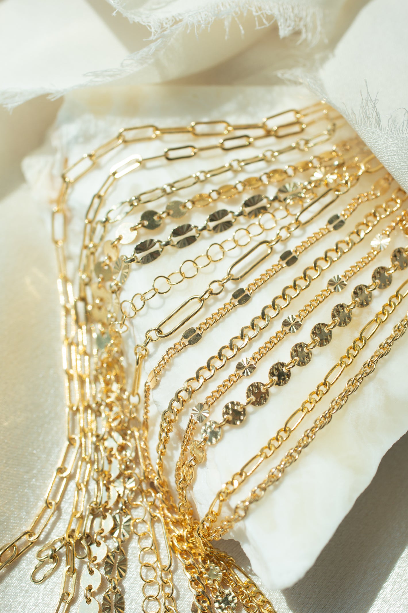Choose from 14K solid gold, 14K gold filled, 14K rose gold filled, or sterling silver chains. Add a dainty connector or meaningful charm to create a piece that’s as unique as you are.