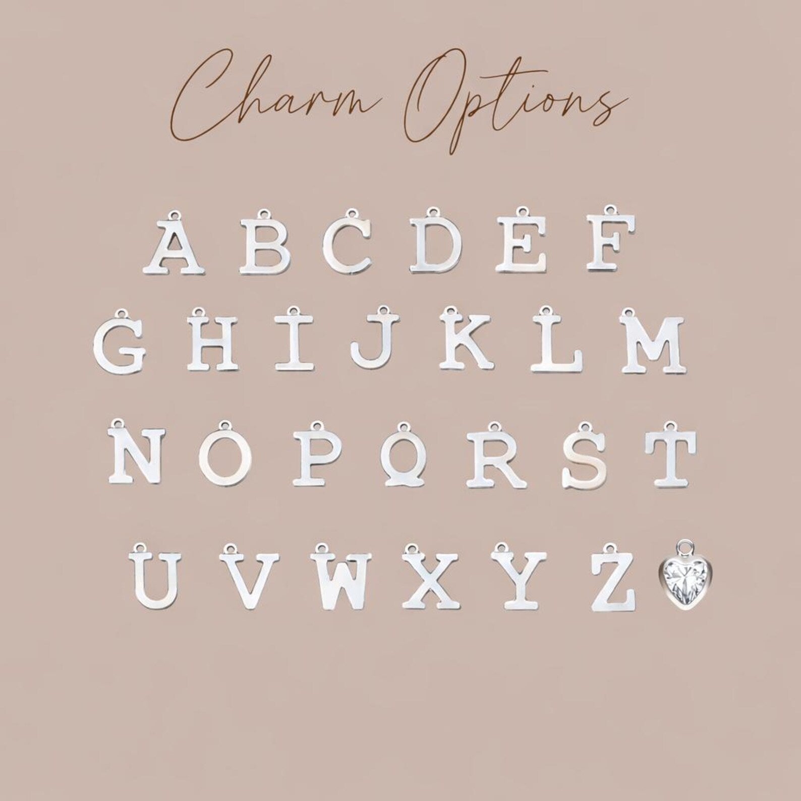 • High-quality 8mm sterling silver initial and heart charms