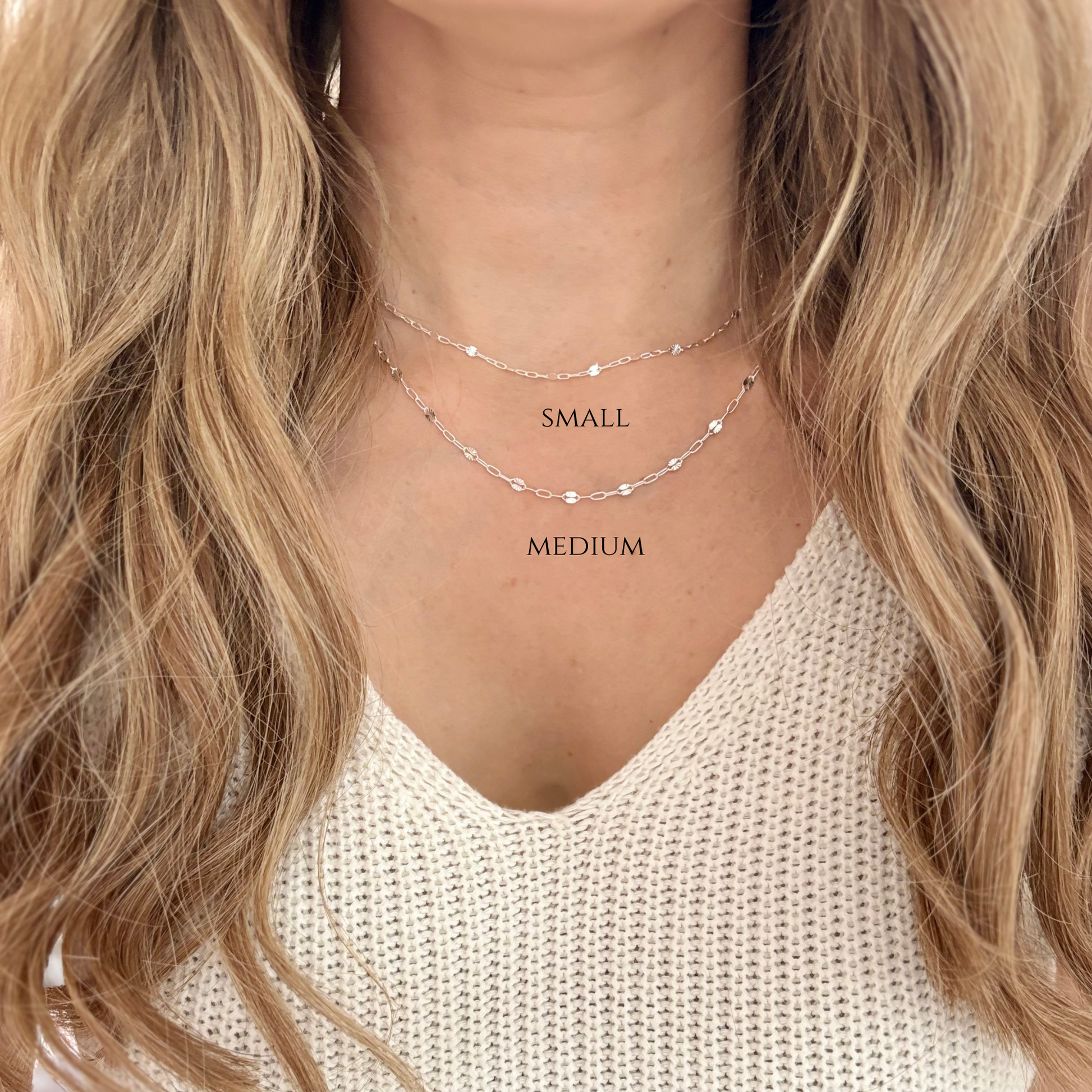 1. Please select if you would like the small or medium chain link size and the length of the necklace.